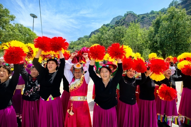 土族阿姑跳起“土族点赞舞”(央广网记者 张海东 摄)